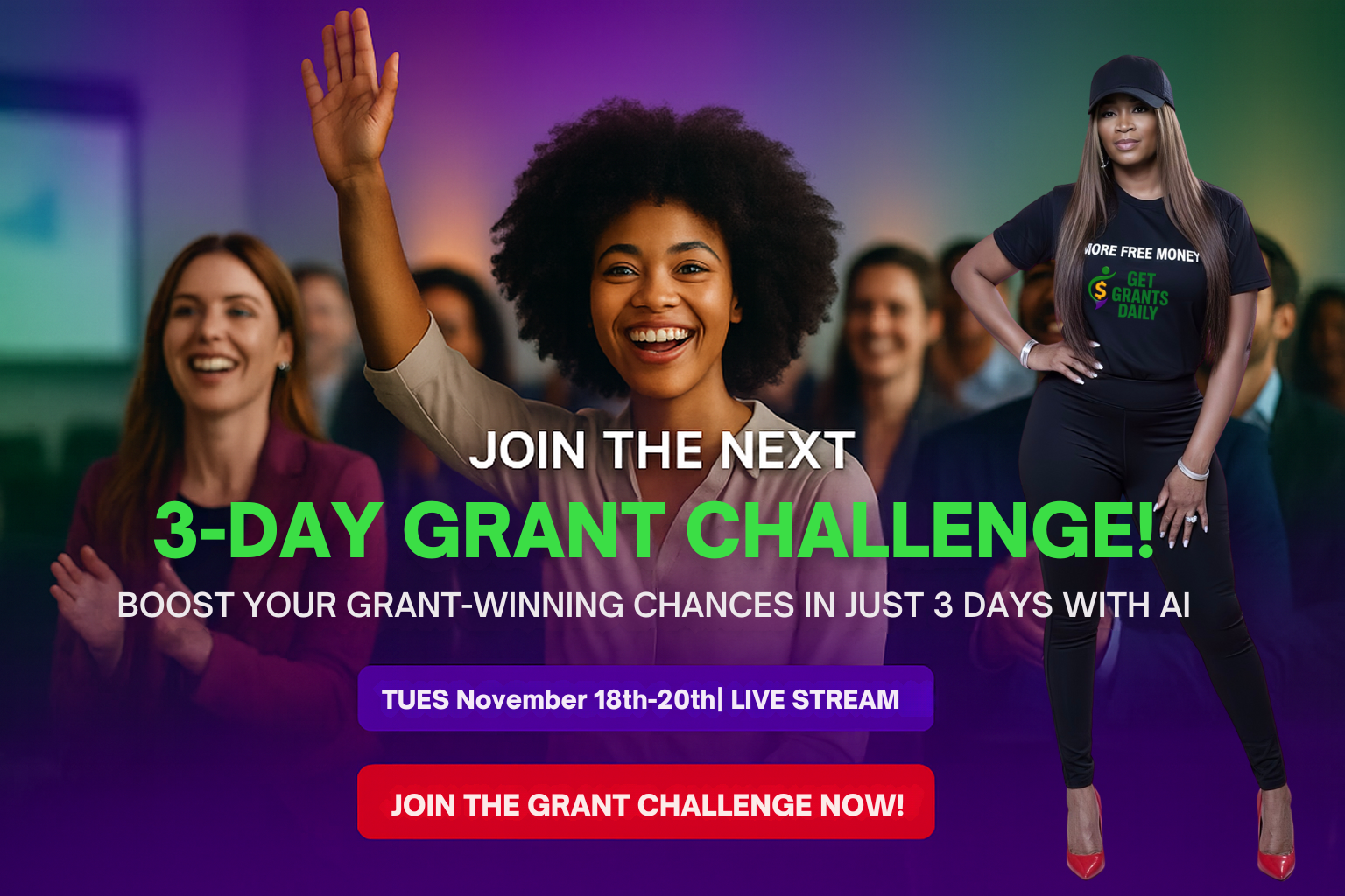 ✅ You walk away from 3-days with the confidence, skills and tools to applyh for any grant that aligns wuth your dream.